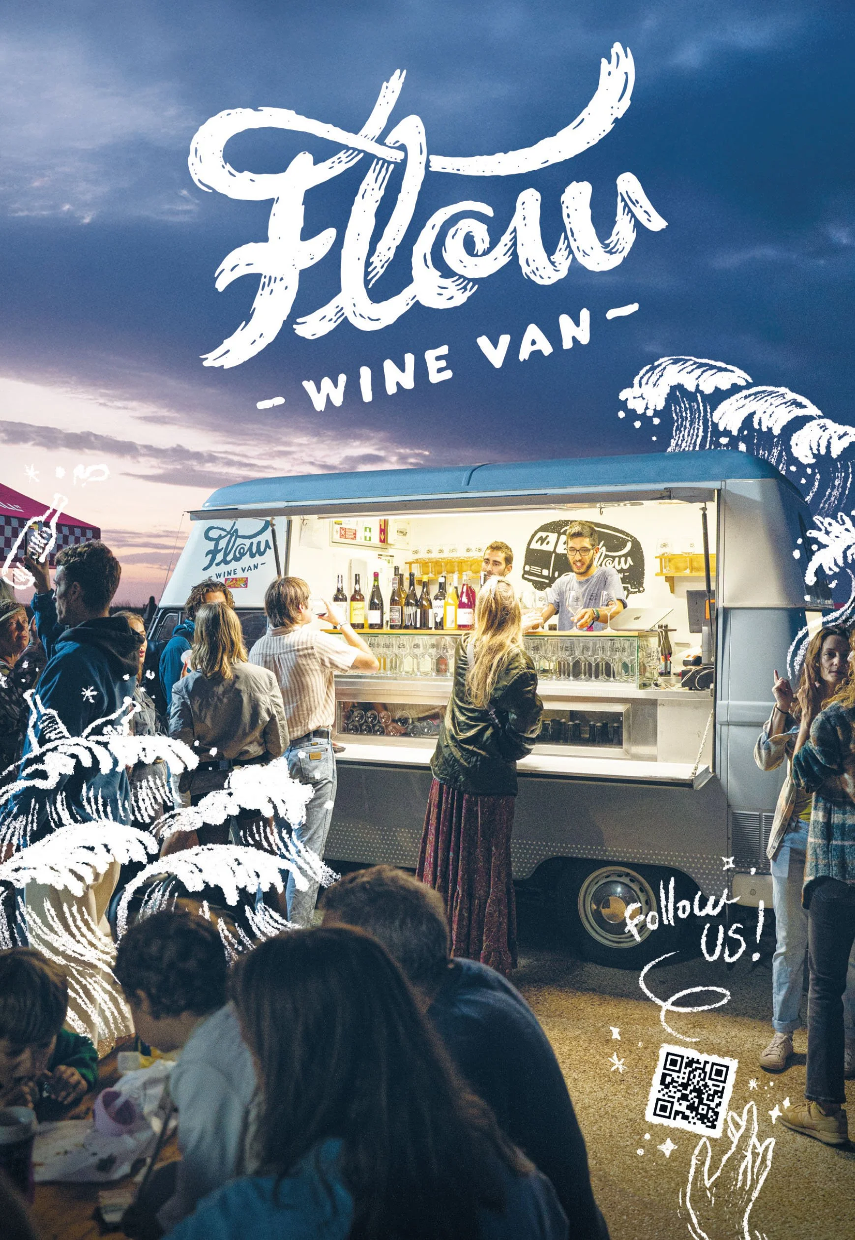 FLOW WINE VAN • LOCAL GRAPES - GREAT TASTES • FROM VINE TO VAN • EARTHY ROOTS - VIBRANT FRUITS •